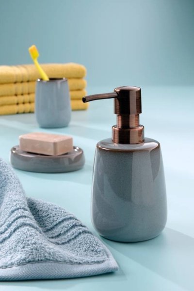 Dávkovač mýdla Liana - tlumené, ponuré, podzimní barvy do vaší koupelny. Tento dávkovač mýdla o rozměrech 8,0 cm, výška 15,0 cm je vyroben z keramiky a pojme 300 ml mýdla Keramický lesklý.