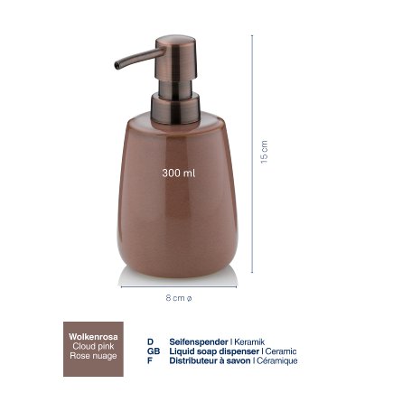 Dávkovač mýdla Liana - tlumené, ponuré, podzimní barvy do vaší koupelny. Tento dávkovač mýdla o rozměrech 8,0 cm, výška 15,0 cm je vyroben z keramiky a pojme 300 ml mýdla Keramický lesklý.
