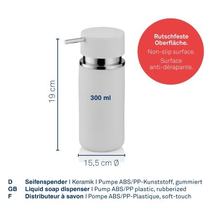 Keramický protiskluzový povrch 6,5 cm, v. 16,5 cm, 300 ml