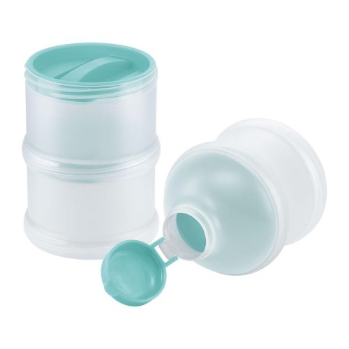 Dávkovač na sušené mléko NUK. Dávkovač na sušené mléko v praktickém setu, na který se budete moci spolehnout i mimo domov. Každá nádobka bezpečně uschová naměřené množství sušeného mléka a pomocí nálevky všechno mléko bezpečně přesypete do dětské lahvičky bez nepořádku kolem.