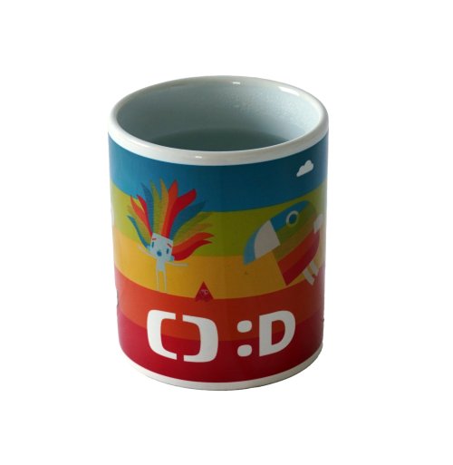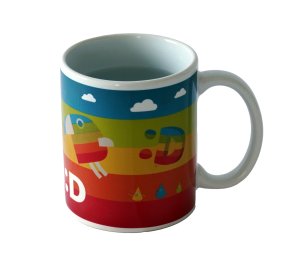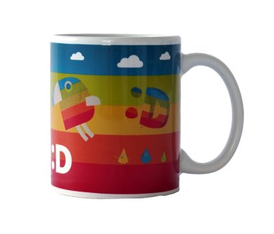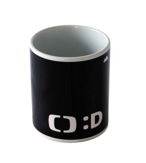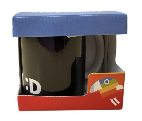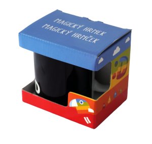 Magický hrneček s licencí Déčko České televize. Vlijte do hrnečku teplou vodu a on odkryje barevné obrázky. Po zchladnutí hrnek opět ztmavne.