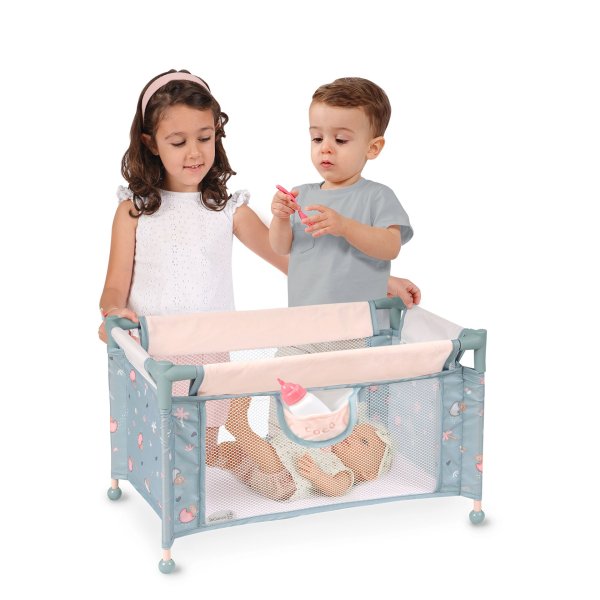 DeCuevas 50080 Cestovní postýlka pro panenky COCO 2024, ze stejnojmenné kolekce, která je novinkou roku 2024, je nejenom krásným doplňkem dívčího pokojíčku, ale i opravdu skladnou a snadno přenositelnou postýlkou na cesty. Kolekce nabízí nejen kočárky, ale i jiné doplňky nejen pro malé slečny a jejich panenky, ale také chlapce. V hravé kolekci COCO je dominantní obrázek dinosauří maminky se svým roztomilým mláďátkem, které nese na zadečku ještě vaječnou skořápku. Potisk malého dinosauříka na jemně holubičí šedomodré látce je základem celé kolekce, již zdobí prvky v pískové nebo narůžovělé barvě, která se promítá i do většiny nosných konstrukcí. Nádherný španělský design, precizní zpracování. Velmi snadná manipulace během samotné hry. Materiál: kov, plast, textil. Baleno v krabici v barvách kolekce. Doporučený věk od 3 let.