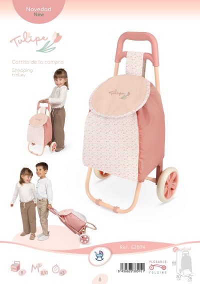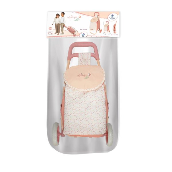 DeCuevas 52074 Skládací cestovní taška na kolečkách Tulipe 2025 ze stejnojmenné kolekce, která je novinkou roku 2025, potěší jistě každou malou slečnu, která ráda cestuje se svou panenkou anebo chodí ráda na nákupy. Do tašky se vejde plno věcí a díky kolečkům se všechno snadno uveze. Tulipe je, jak již sám název napovídá, kolekce plná tulipánů v překrásně sladěných teplých pastelových lososových barvách. Světlejší a tmavší odstíny barev jsou vkusně doplněné drobným květinovým vzorem ve stejných tónech na bílosmetanovém podkladu. Tento motiv ještě navíc u kočárků umocňují svým tematickým tvarem i překrásné, jako tulipán vypadající tašky. Květ tulipánu zdobí i dřevěné výrobky této kolekce. Tato kolekce nabízí výběr výrobků od jídelních sad přes postýlky a kočárky až po dřevěný nábytek pro panenky. Nádherný španělský design, precizní zpracování. Skládací model, velmi snadná manipulace během samotné hry. Materiál: kov, plast, textil. Baleno v krabici v barvách kolekce. Doporučený věk od 3 let.