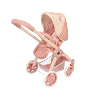 DeCuevas 80574 Skládací kočárek pro panenky 3 v 1 s taškou Tulipe 2025 - 70 cm patří do stejnojmenné kolekce, která je novinkou roku 2025 a nabízí výběr výrobků od jídelních sad přes postýlky a kočárky až po dřevěný nábytek pro panenky. Tulipe je, jak již sám název napovídá, kolekce plná tulipánů v překrásně sladěných teplých pastelových lososových barvách. Světlejší a tmavší odstíny barev jsou vkusně doplněné drobným květinovým vzorem ve stejných tónech na bílosmetanovém podkladu. Tento motiv ještě navíc u kočárků umocňují svým tematickým tvarem i překrásné, jako tulipán vypadající tašky. Květ tulipánu zdobí i dřevěné výrobky této kolekce.