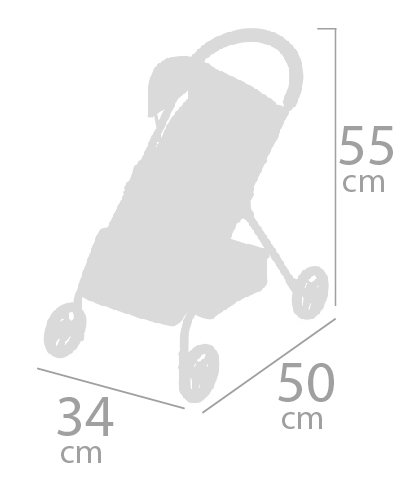 • Rozměry kočárku: 50 × 34 × 55 cm (výška k rukojeti)