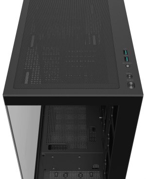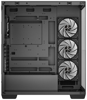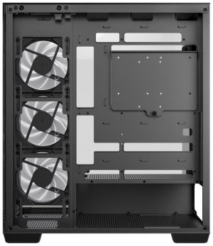 PC skříň DEEPCOOL CG580 4F v jednokomorovém provedení, které nejenom pojme výkonné komponenty, ale také je dá patřičně na odiv. Díky prosklené bočnici a přednímu panelu poskytuje panoramatický a nepřerušovaný pohled na vnitřní uspořádání, a tím i stylový vzhled celé skříně. Konstrukce nabízí praktickou přihrádku na základní desku, což přispívá k čistému a přehlednému uspořádání.