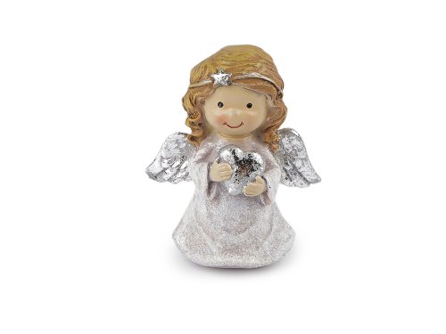 Soška roztomilého anděla je jemně posypaná třpytivými glitry. Díky metalickým detailům bude působivou dekorací i dárkem.