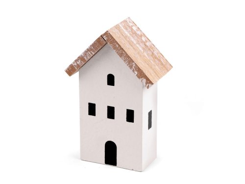 Celodřevěný domeček můžete postavit jako dekoraci na parapet okna, polici nebo třeba krbovou římsu. Stylově doplní různá aranžmá. Domeček je jednostranný.
