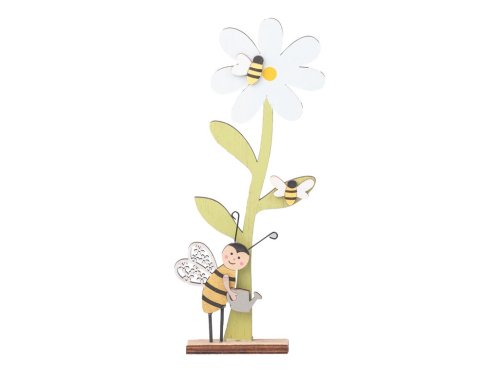 Tato barevná dřevěná dekorace ve tvaru kytky s včeličkou je veselým a hravým doplňkem pro každý prostor. Díky živým barvám a jemnému provedení je ideální pro jarní výzdobu nebo jako dekorace pro děti. Její velikost je 80X35X230mm.