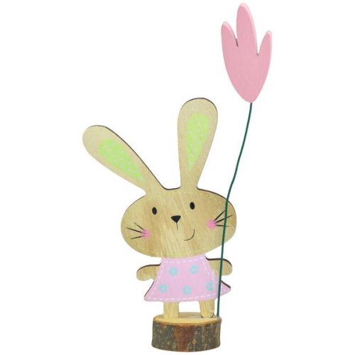 DEKORACE DŘEVĚNÁ ZAJÍČEK NA PAŘEZU 17 CM
