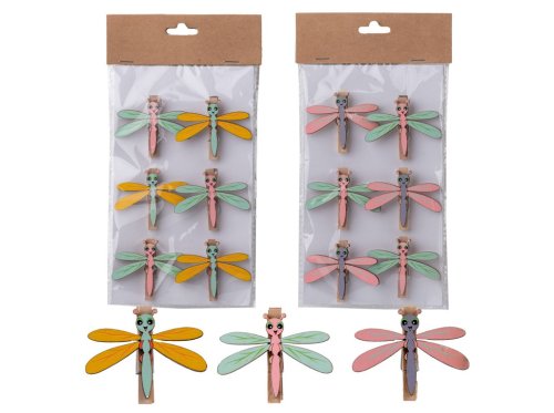 Dekorace dřevěné vážky na kolíčku mix barevná 6ks přináší veselou a barevnou atmosféru do vašeho domova. Set obsahuje 6 vážek na kolíčku v různých barvách, ideální pro letní a jarní dekorace. Její rozměry jsou 50mm.