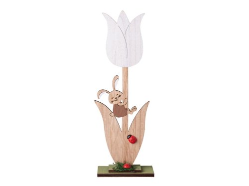 Dekorace dřevo 100x290mm tulipán se zajíčkem, přírodní, bílá , hnědá