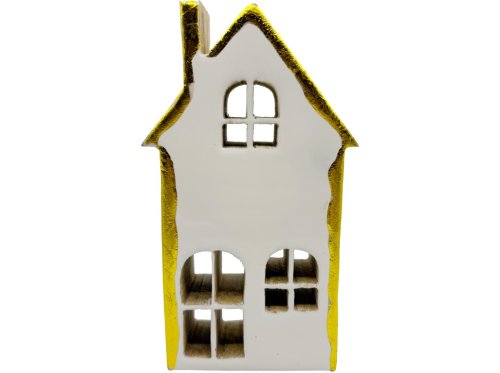 Dekorace dřevo 100x40x180mm Domeček na postavení, bílá, zlatá