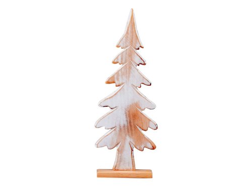 Dekorace dřevo 115x305mm,stromek na postavení, přírodní, bílá