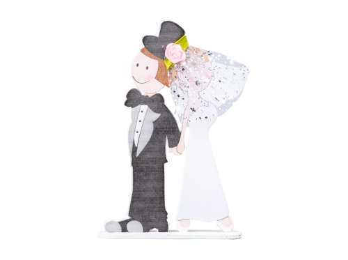 Dekorace dřevo 120x180mm nevěsta s ženichem,černá s bílou