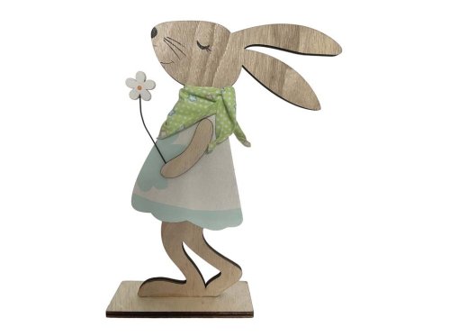 Dekorace dřevo 140x190mm zajíc na postavení, přírodní, bílá , modrá, zelená