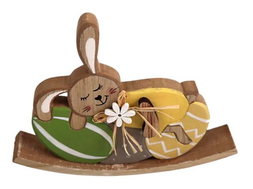 Dekorace dřevo 160x125mm zajíc, přírodní, žlutá, zelená