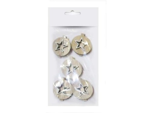 Dekorace dřevo 5 ks 45 mm hvězda kolíček, přírodní