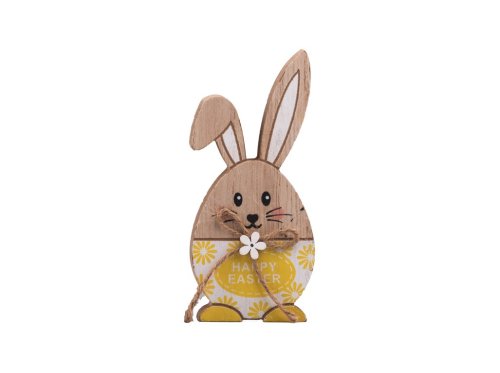 Dekorace dřevo 65x145mm zajíc na postavení, přírodní, žlutá
