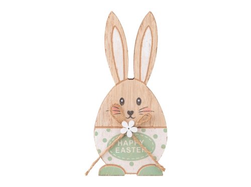 Dekorace dřevo 65x147mm zajíc na postavení, přírodní, zelená