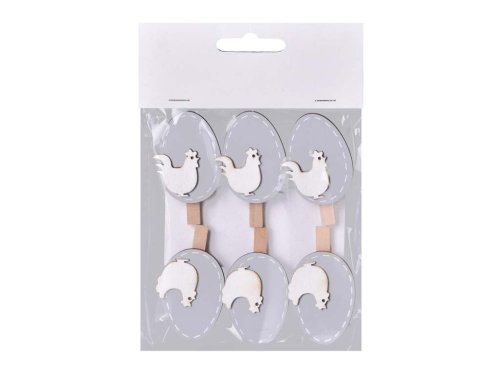 Tato sada 6 dřevěných dekorací ve tvaru vajíček o rozměru 35×60 mm je vybavena praktickým kolíčkem pro snadné připevnění. Šedobílý mix barev působí moderně, jemně a skvěle ladí s přírodně laděnou velikonoční výzdobou. Kolíčky lze jednoduše upevnit na větvičky, věnce, provázky, dárkové balíčky či různé aranže. Dekorace jsou lehké, pevné a opakovaně použitelné. Ideální doplněk pro stylové jarní dekorování i kreativní tvoření s dětmi. Zboží je dodáváno v mixu. Doručované zboží je vybíráno náhodně a nelze vybrat konkrétní provedení.