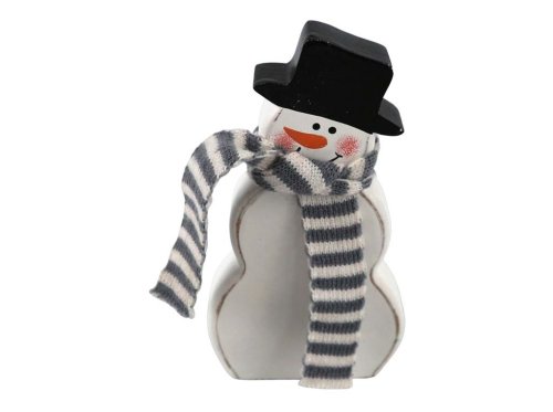 Dekorace dřevo 80×150mm sněhulák, bílá, černá
