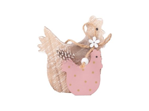 Dřevěná slepička s menší růžovou slepičkou je ideální dekorací v jarním období zejména na Velikonoce.