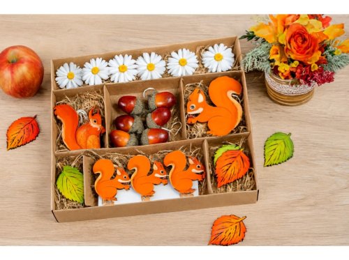 Praktický set dekoračních prvků z dřeva a filcu obsahuje 21 kusů v pestrém mixu barev i tvarů. Ideální pro tvoření, zdobení aranžmá, věnců, dárků nebo velikonočních a jarních dekorací. Vše je přehledně uloženo v boxu, který usnadňuje skladování i opakované použití. Skvělá volba pro kreativní projekty doma i ve škole. Zboží je dodáváno v mixu. Doručované zboží je vybíráno náhodně a nelze vybrat konkrétní provedení.