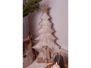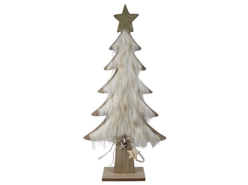 Dekorace dřevo+filc 300x595mm stromek na postavení, přírodní s gliterm, bílá