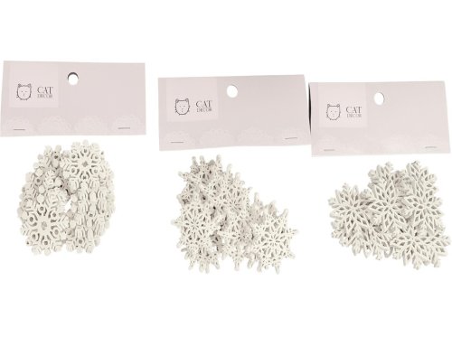Dekorace dřevo set 12ks 38x36/37x40mm vločky mix, bílá