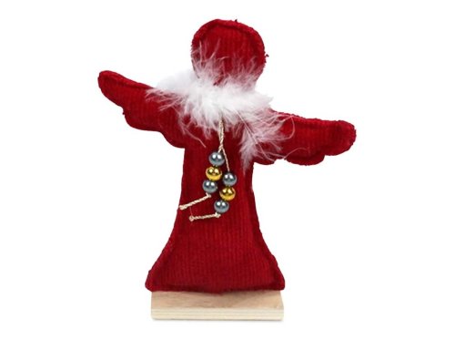 Dekorace filc 155X205mm Anděl na postavení s korálky, červená, bílá