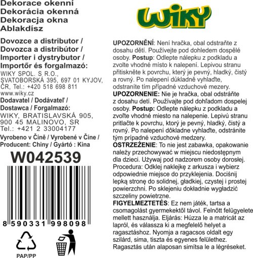 Dekorace okenní o velikosti 41x29 cm Vločky VÁNOCE.