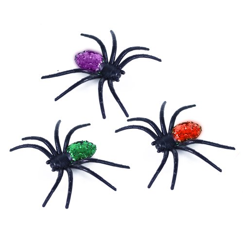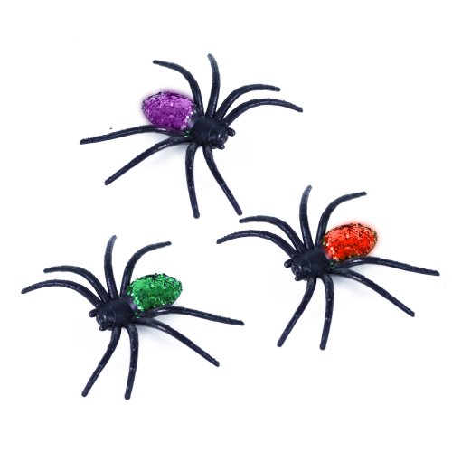 Malí gumoví pavouci, kteří jsou senzační dekorací na Halloweenskou párty! Balení obsahuje 6 ks barevných třpytivých pavoučků.
