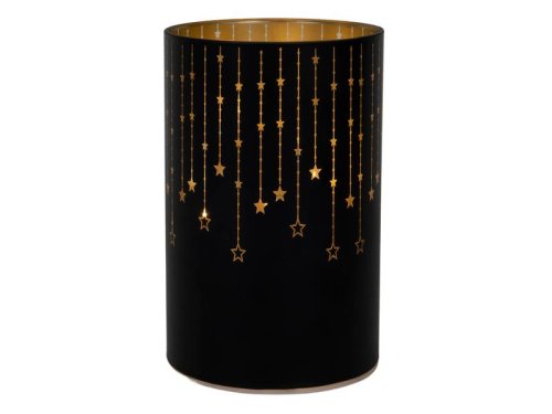 DEKORACE SKLENĚNÝ VÁLEC LED ČERNÁ/HVĚZDA 14CM