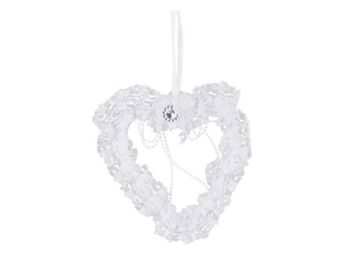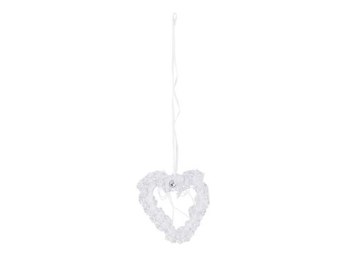Svatební dekorace ve tvaru srdce, ideální pro ozdobení svatební tabule nebo interiéru. Její rozměry jsou 110 x 120 mm.