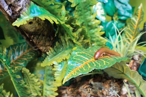 Věrná imitace oblíbené tropické kapradiny ledviníku ztepilého (Nephrolepis exaltata) může sloužit nejen jako ozdoba terária, ale také jako úkryt pro terarijní živočichy nebo jejich živou potravu. Je nenáročná na údržbu a hygienická, vhodná i do podmínek, kde by živé rostliny strádaly, nebo do karanténních terárií. Stabilitu dekorace zajišťuje těžká polyresinová báze. Vhodná i pro použití v akváriu. Rozměry: výška 25 cm Materiál: plast, polyresin TIP: Dekorativní prvky vypadají vždy lépe v lichém počtu.