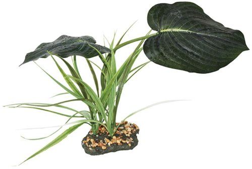 Věrná imitace trsu tropických rostlin může sloužit nejen jako ozdoba terária, ale také jako úkryt pro terarijní živočichy nebo jejich živou potravu. Je nenáročná na údržbu a hygienická, vhodná i do podmínek, kde by živé rostliny strádaly, nebo do karanténních terárií. Stabilitu dekorace zajišťuje těžká polyresinová báze. Stonky mají uvnitř pevný drát, který lze ohnout do požadovaného tvaru. Vhodná i pro použití v akváriu. Rozměry: výška cca 42 cm Materiál: plast, polyresin TIP: Dekorativní prvky vypadají lépe v lichém počtu.