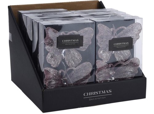 Dekorace vánoční MOTÝL 11 cm, PH RŮŽ (2 ks).
