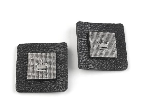 Dekorační aplikaci čtvercového tvaru zdobí znak koruny. Aplikace je vyrobena z eko kůže a odznak je k ní pevně připevněný. Použití: [Aplikaci využijete nejen při zdobení oděvů např. na mikiny, bundy, svetry, ale lze jí ozdobit i brašnu, tašku nebo batoh.]