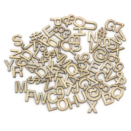 Dekorační dřevěné výřezy Balení obsahuje 86 kusů jednotlivých písmen a číslic Velikost: 13 mm Ideální pro zdobení sezónních přání, krabiček, dárkových tašek a výrobu svatebních dekorací