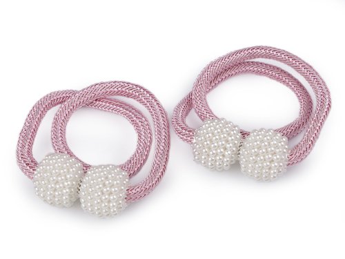 Dekorační úvaz / šňůra na závěsy s magnetem - růžová nejsv. (2 ks)