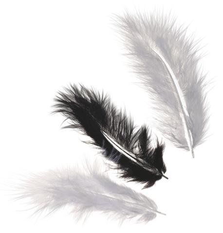 Dekorativní peříčka Marabu mix - černá, bílá 15 ks / 10 cm
