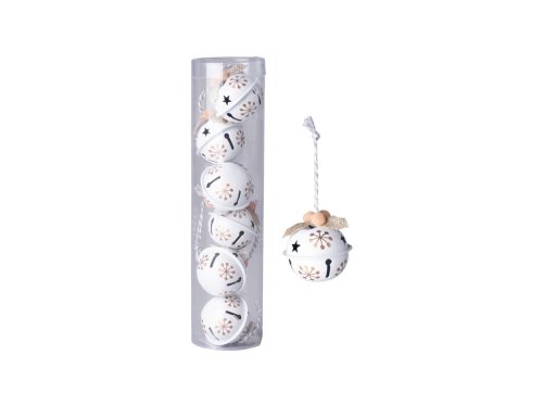 Dekorativní rolničky 6 ks, 40 mm, bílo-hnědá kombinace