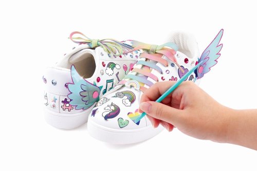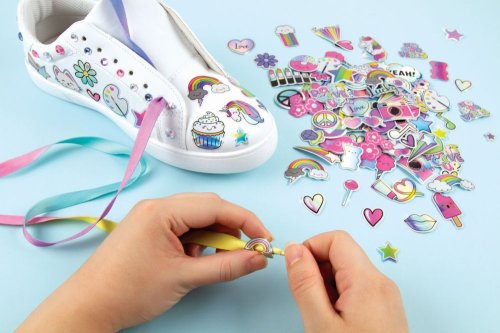 Dočasné tetování pro vaše boty. Dodejte své obuvi šmrnc pomocí dekorativních samolepek. Přidejte jich jen trochu nebo hodně. Proměňte své boty znovu a znovu. Zahrnuje korálkové přívěsky a tkaničky do bot. Přebytečné množství odstraňte teplou vodou. Věk od 8+.