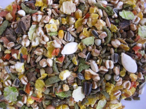 Složení: obiloviny, vedlejší produkty rostlinného původu, zelenina (14,1 %), semena (7 % slunečnicová semínka, 1 % dýňová semínka), ořechy (3 % podzemnice olejná), ovoce (1 % rozinky, 0,5 % sušená jablka, 0,5 % sušené banány), rostlinné bílkovinné extrakty, minerály, droždí, oleje a tuky.