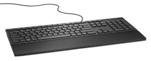 Pohodlný design pro každý stůl Kabelová klávesnice Dell se vyznačuje kompaktním designem, který přesto zahrnuje plnohodnotnou klávesnici i číselné klávesy. Je ideální pro domácí i kancelářské prostředí. Odolné provedení a tiché klávesy umožňují každodenní pohodlnou práci se stolním počítačem. Kabelovou klávesnici Dell lze doplnit opěrkou pro zápěstí, která se prodává samostatně.
