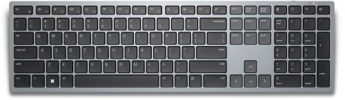 Stylová plnohodnotná bezdrátová klávesnice Dell podporuje připojení až ke třem zařízením v jeden moment. Napájení zajišťují dvě AAA baterie, které zaručí výdrž až 36 měsíců. Připojení je realizováno bezdrátově skrze Bluetooth či miniaturní USB přijímač a technologii 2,4 GHz.