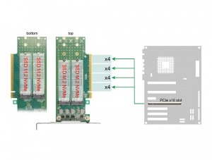 Tato karta vyžaduje PCIe rozvětvení na základní desce k rozdělení signálu PCIe, aby bylo možno využívat více portů.