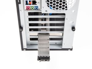 Výmenný rámeček je vybaven zámkem, aby se zabránilo neoprávněnému přístupu. Kovový stabilní nosič má nahoře a vespod pružiny, které omezují vibrace.