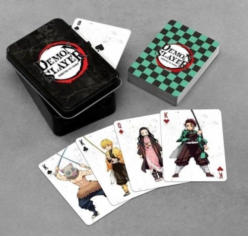 Zahrajte si oblíbenou karetní hru spolu s hrdiny z japonské mangy Demon Slayer. Krásné hrací karty potěší věrné fanoušky. Ve uložíte do plechové krabičky. Obsahuje 52 karet + 2 žolíky.